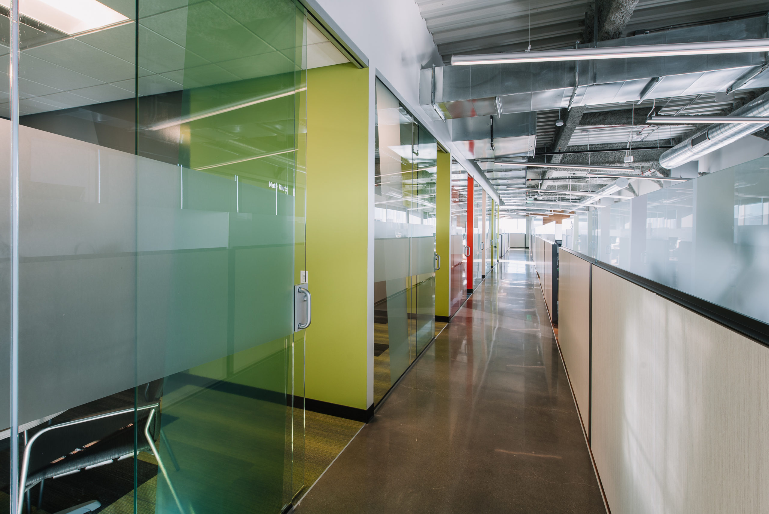 Other design elements included retaining brick from the existing building and utilizing it on the interior. Company colors were placed strategically throughout the space and historical documents and props were identified and given a home. Glass was used in the office areas to create a lighter and more open feel to the individual offices and work stations. Exterior windows were also added to provide sightlines to those sitting and working. “We wanted to produce a space that was bright and allowed natural light to flow in,” says interior designer Laura Bauer, “it creates an atmosphere that people want to be in.”