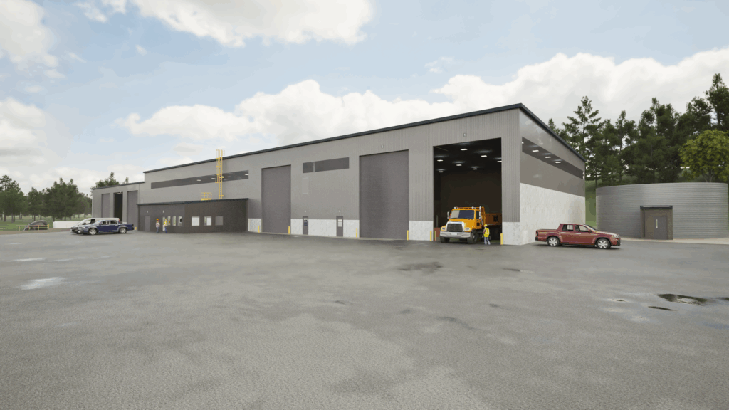 The project consists of a 37,400 square foot metal building developed to replace an existing building that was damaged by a fire. The facility accommodates the demands of municipal solid waste (MSW) and recycling operations and was organized to have distinct zones for recyclable material processing, a tip floor for MSW, and a transfer bay for semi-trailer load-out. Translucent panels along the clerestory introduce natural light deep into the building improving visibility and cutting back on artificial lighting needs.