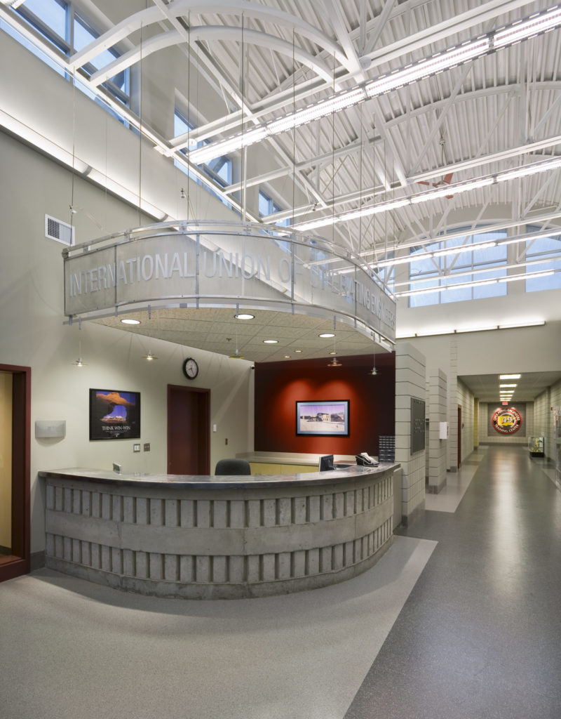 Local 49 represents operating engineers who work as heavy-equipment operators, mechanics and surveyors. They provide instruction at their training facility for hazardous material handling procedures, paving applications, crane operation, excavation, forklift operation and heavy-duty highway-equipment operation. This 65,000-square-foot facility contains state-of-the-art training classrooms, eight large shop bays, a welding shop, two wash bays and a 30,000-square-foot enclosed area for winter training. The facility utilizes a geothermal field, heavy-duty ventilation systems and energy-recovery units for HVAC operation.