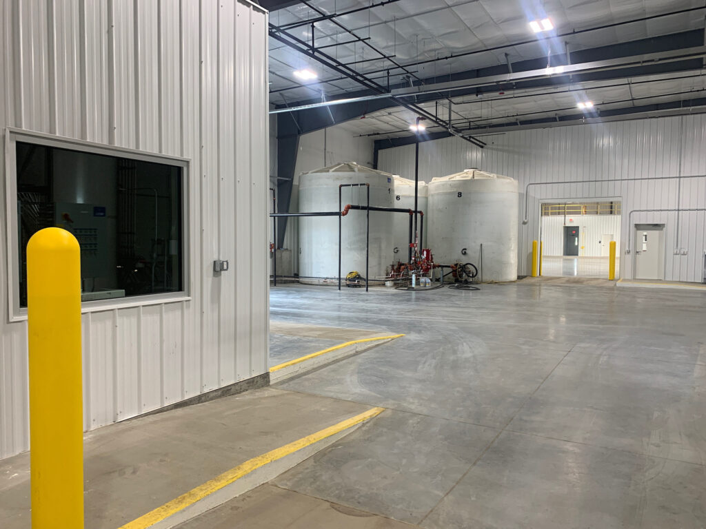Inside the chemical warehouse area, there’s an interior containment dike housing ten 5,100-gallon stainless steel storage tanks, a catwalk system for easy access to the tanks, storage space for containers, a repack system, and a floor scale. Additionally, the warehouse area hosts the control room for the chemical automation system. The office is seamlessly attached to the north side of the building, with a Fairbanks Tracker Scale in the front. Linn Co-op also offers a 24/7 customer access bay for added convenience. Marcus Construction served as the design-build general contractor for this liquid chemical warehouse and its site.