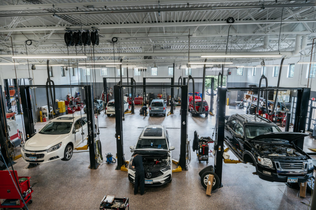 TGK Automotive is a family owned and operated auto repair shop with multiple locations throughout the Twin Cities. The company needed additional space to accommodate their continued growth in the metro area and decided to purchase a new property. The building is approximately 15,000 square feet and includes twelve vehicle repair bays as well as a separate commercial truck hoist bay. In addition to vehicle repair, this facility houses TGK’s corporate office headquarters.
