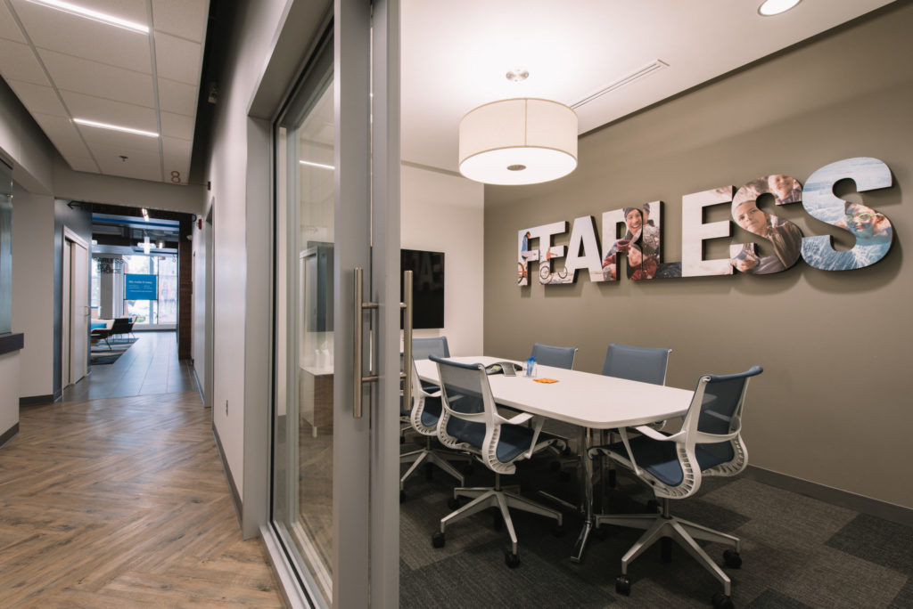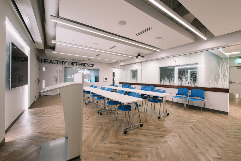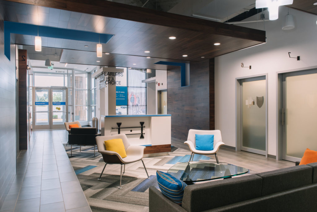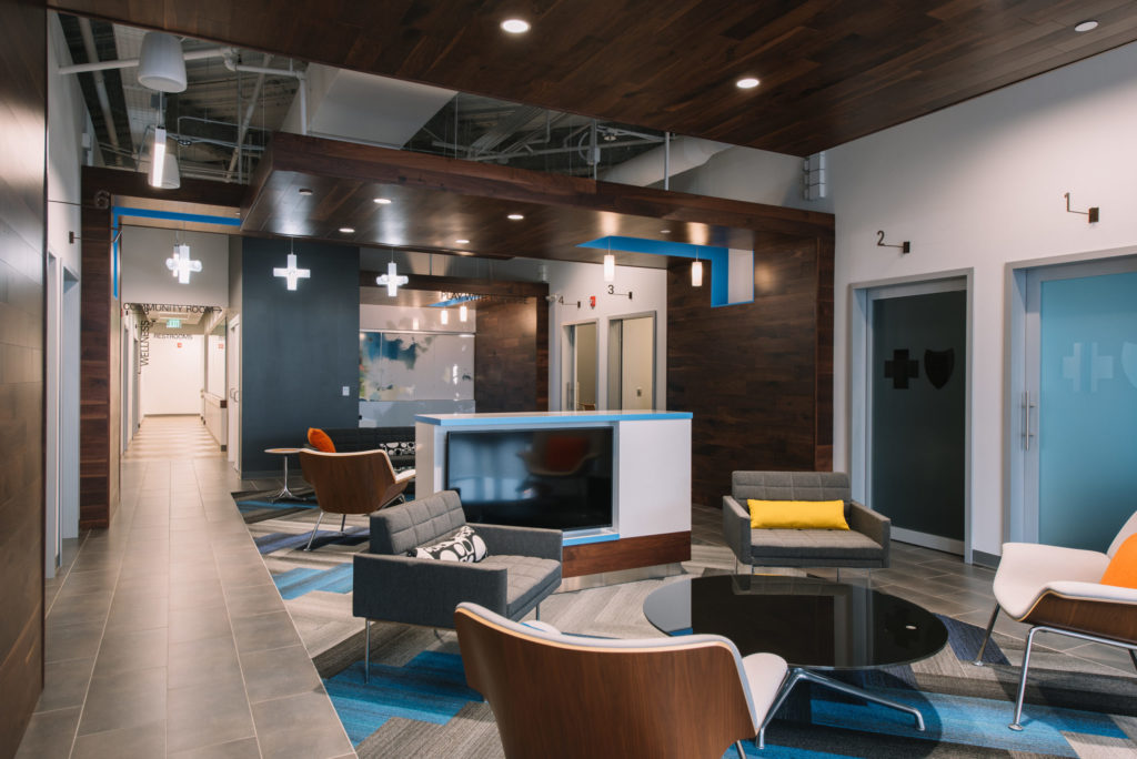 Blue Cross Blue Shield of Minnesota rolled out a new business model providing a retail space for members and non-members alike to receive information, educational classes and fitness and yoga classes. The existing lease space was transformed into a welcoming retail area with a design that is reflective of a contemporary living room rather than a clinic.