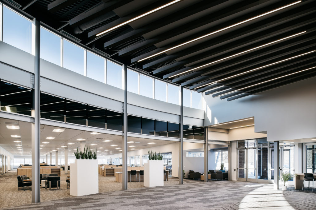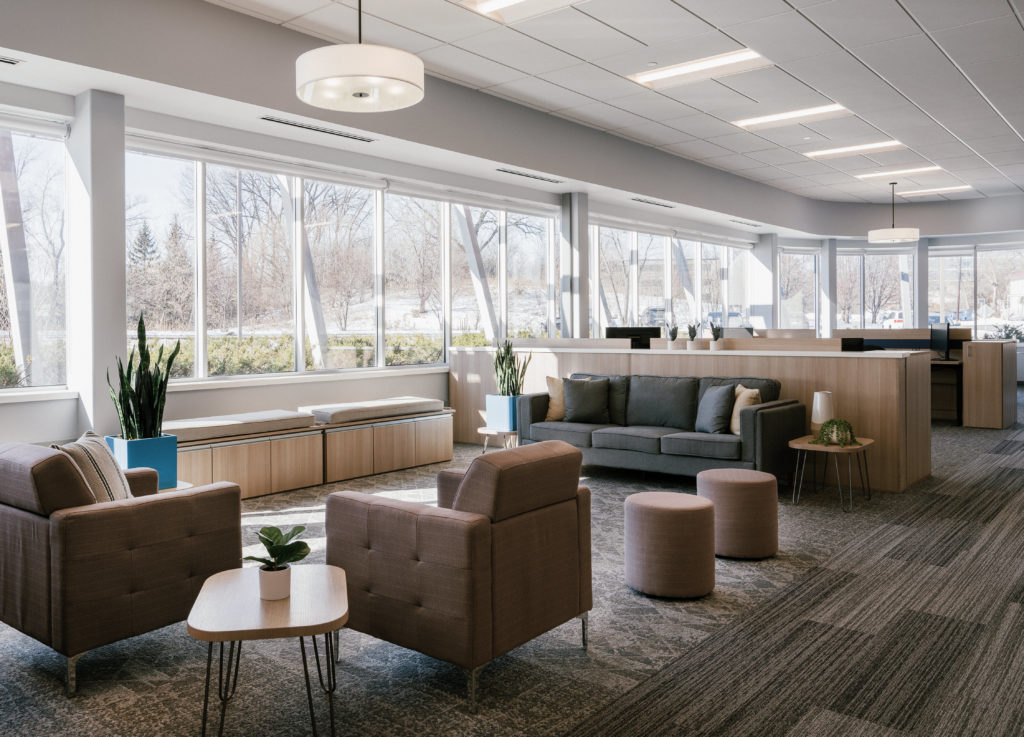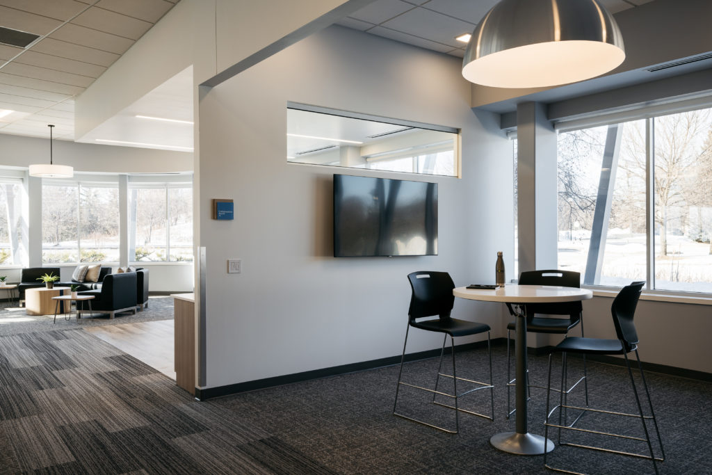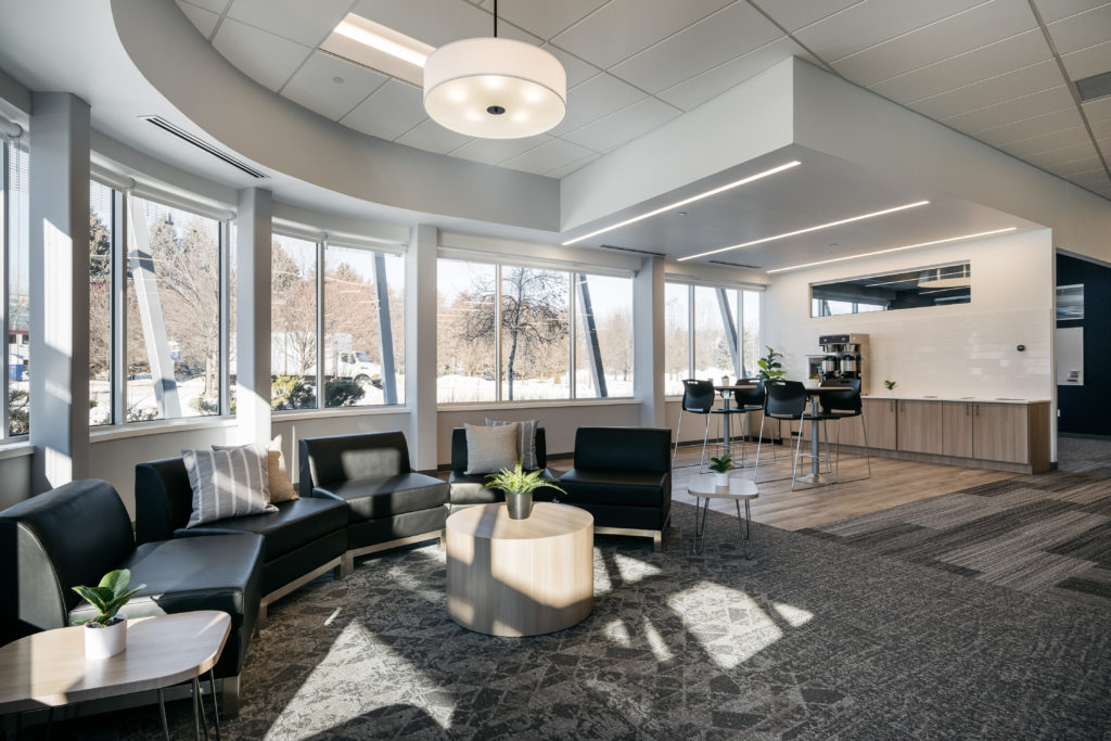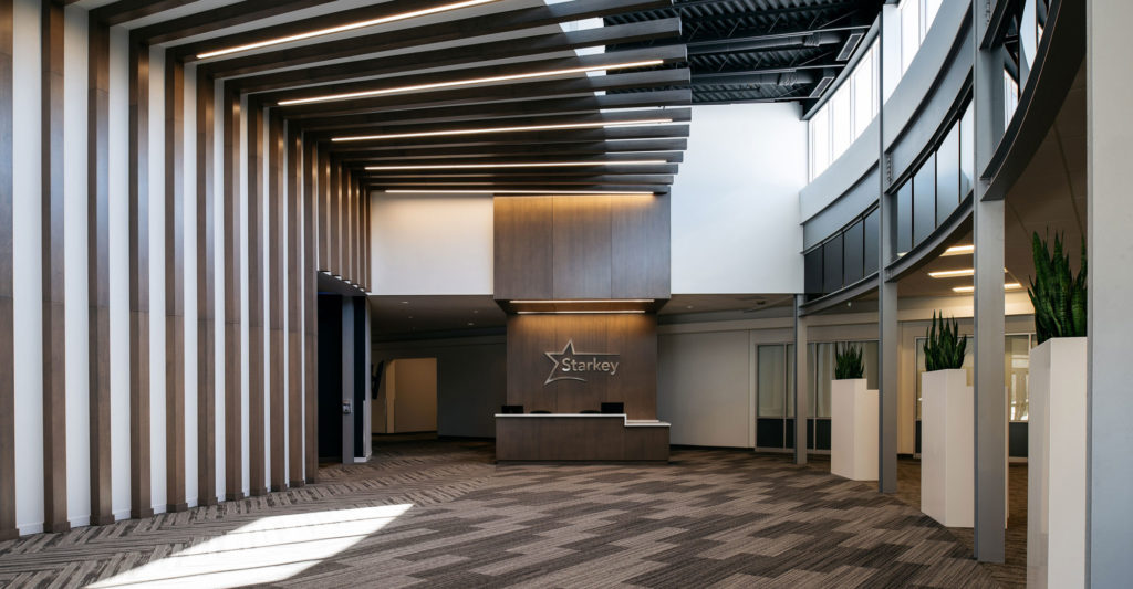 The interior remodel of the WFA lobby, hospitality bar, and sales office area is the first of a multi-phase redevelopment plan for this campus building. This pilot project implemented interior design criteria developed by KOMA for Starkey’s Minnesota based headquarters.